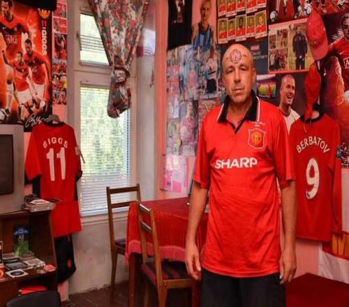 他在保加利亚的住所布满曼联纪念品,包括贝尔巴托夫等心仪球员的海报、球衣和横幅。